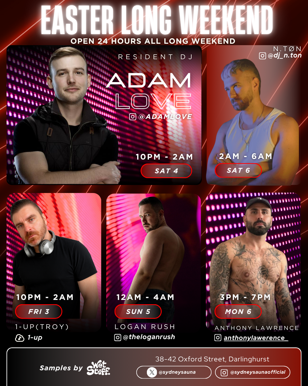 Experience a sensual soundscape as our sexy DJs take over Saturday nights with their signature blend of melodic techno, hypnotic arpeggios, evolving chord textures, and warm, pulsing basslines to get you in the mood for cruising and playing.